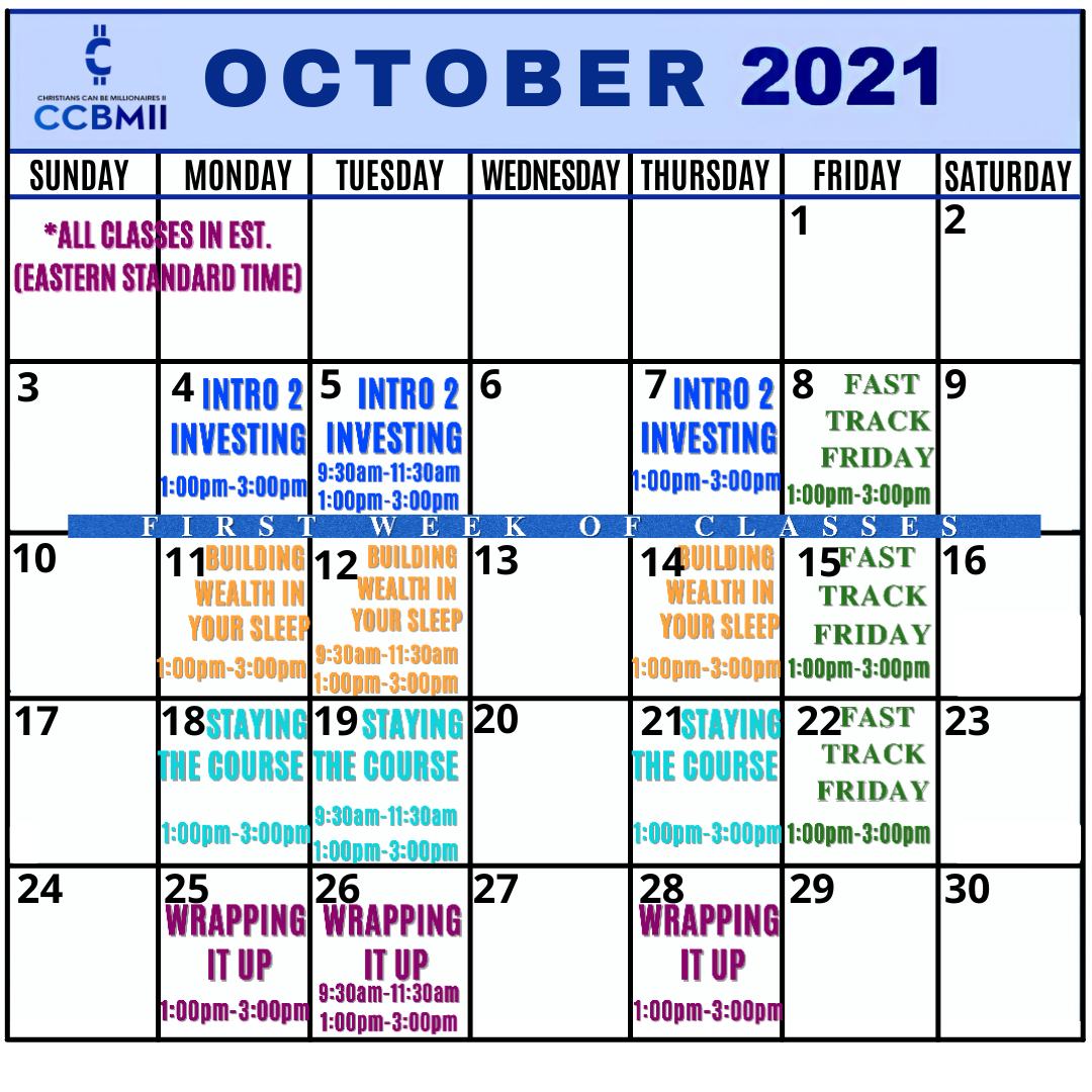 *BUILDING WEALTH IN YOUR SLEEP is offered 4 times within the second week of classes.